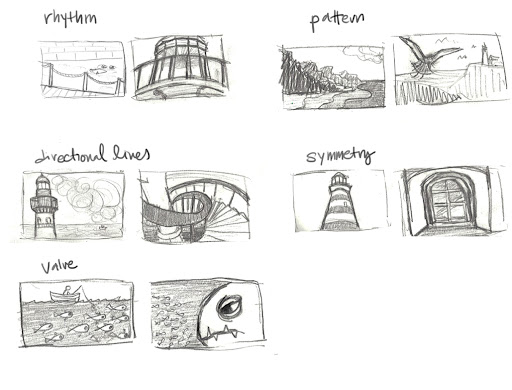 Here’s a quick post with some recent thumbnails from my layout design class, demonstrating some elements of design: