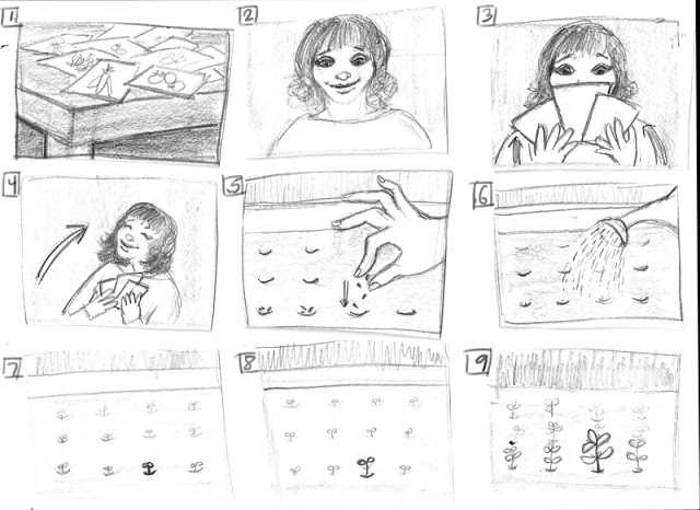 I’m looking forward to the storyboarding class – it will be fun to have an opportunity for visual storytelling. Our first assignment was to storyboard a simple actual experience that we’ve had. Since classes just started we haven’t had much instruction yet – they just want to see our baseline skills. SO, without further ado…