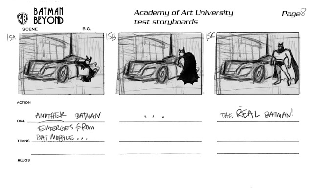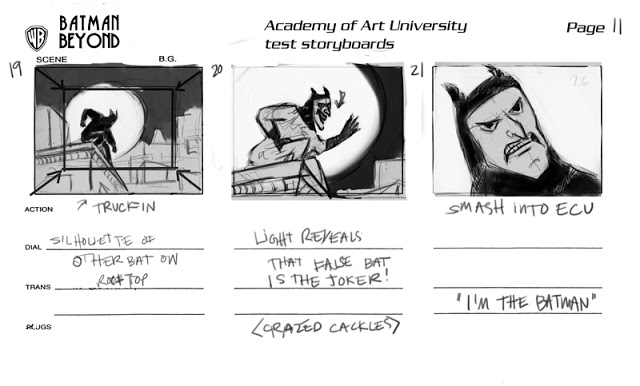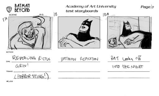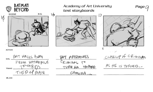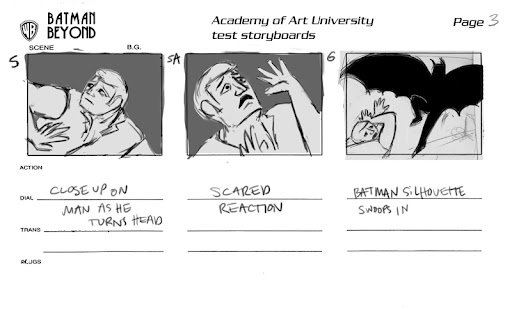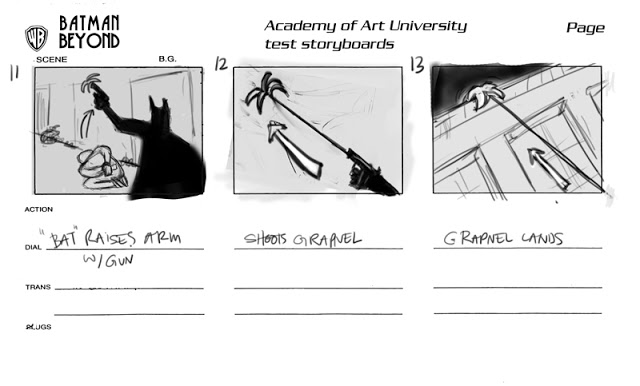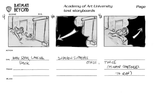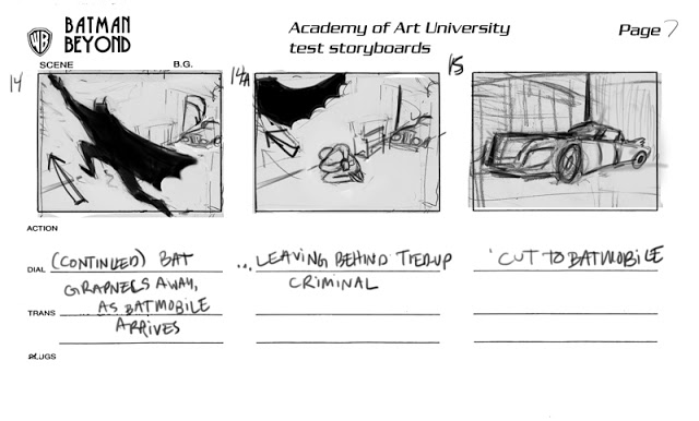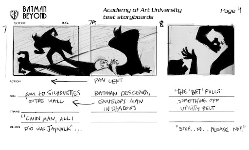 This storyboarding sequence spanned two modules – we were given a script for “Batman: The Animated Series” to interpret through storyboards. These are more of a progressive step-by-step production board as opposed to the presentation boards we did for the trunk monkey assignment.