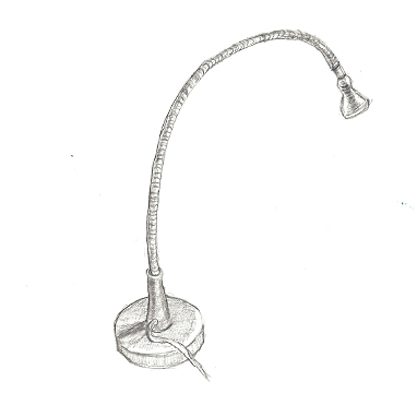 Here’s a drawing of Chappy from our visit to the Vineyard on New Year’s with Nick’s parents. The lamp with the intricate shade pattern was by our bedside; the other one is a bright red ikea lamp that’s on Nick’s side of the bed here at home.