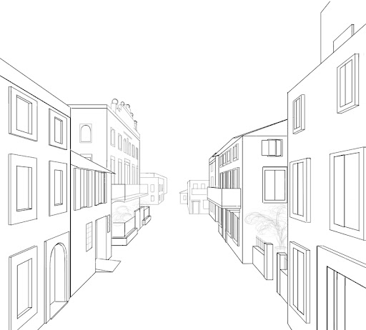 I also blocked out the approximate size/shape of each of my buildings so that I could translate them to the proper perspective. This step wasn’t required but I couldn’t figure out how to get the windows & doors placed otherwise.