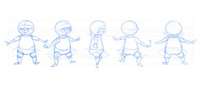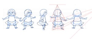 In first week of classes, our Traditional Animation 2 assignment was to create a a five-point turnaround model sheet. Last fall I played around with some basic character design but hadn’t done actual model sheets marking out the proportions, back or side views for Beryl & Rawrg, or any of my other characters.