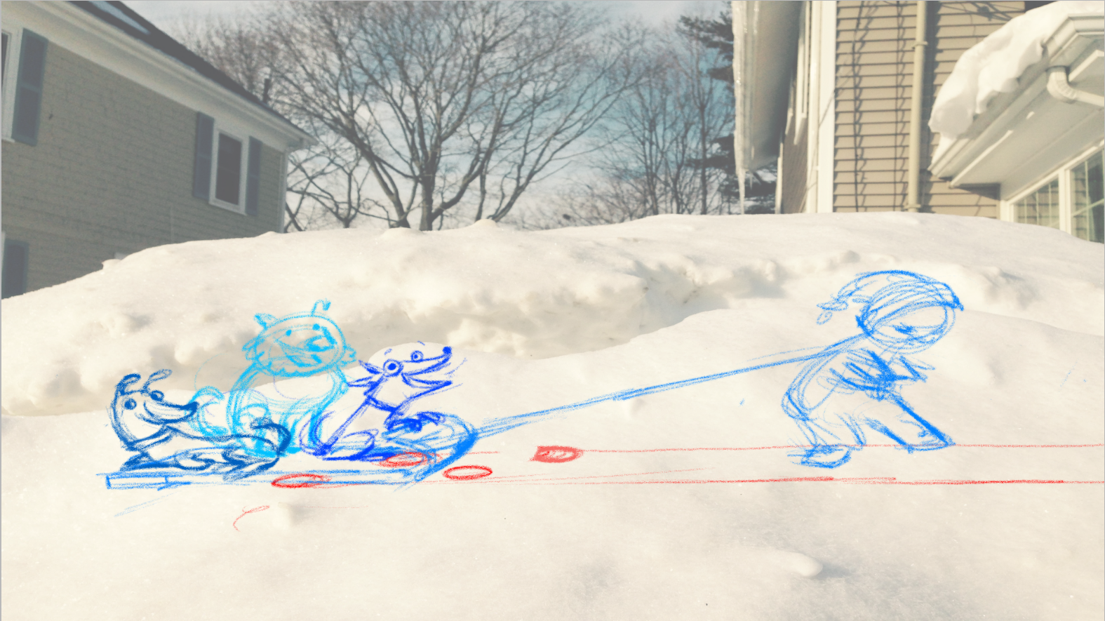 Inspired by our crazy amounts of snow, I’m working on a new little animation. So far have some rough animation and sketches, backgrounds generously provided by the 7-foot snowbanks in front of our house. I’ve taken a bit of a break from animation since I finished up my thesis back in December – it’s super fun to get back into it.