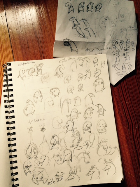 Also posted nine more sketch pages – lots more birds, but also echidnas! Alpacas! Shoebill cranes (those guys are five feet tall)! …And many more assorted animals. Check them out, let me know what you think.